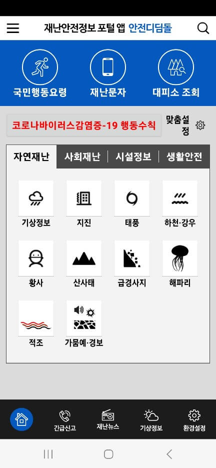 유형별 재난에 대한 요령을 미리 습득할 수 있습니다.
