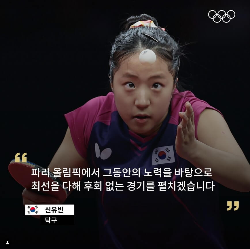2020 도쿄올림픽에서 성공적으로 데뷔한 '삐약이' 신유빈이 한국 탁구의 에이스로 성장하였습니다. 신유빈은 임종훈과 함께 혼합 복식에 출전하여 한국 최초의 올림픽 메달을 노리고 있습니다.