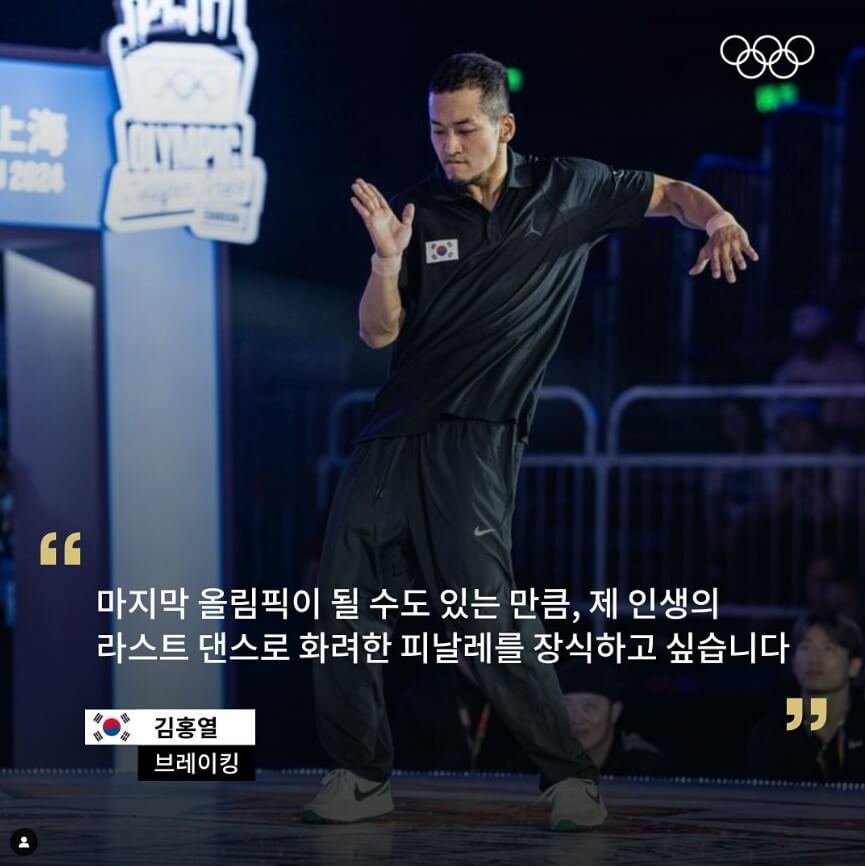 2024 파리올림픽에 처음 도입된 브레이킹에서 팀 코리아의 유일한 비보이인 홍텐(김홍열)이 출전합니다. 그는 한국 최초의 올림픽 브레이킹 메달리스트가 될 준비를 마쳤습니다.